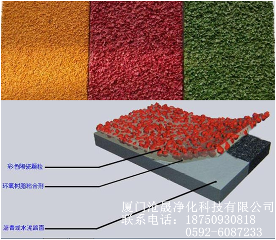 隨著可持續(xù)發(fā)展和人本主義理論在城市建設(shè)中的應(yīng)用,城市道路的美觀性、色彩的識(shí)辨性及安全防滑的要求越來越高;彩色陶瓷顆粒是一種新型的彩色路面鋪裝材料,通體一色、永不褪色無色差、反光性好。彩色陶瓷顆粒防滑路面主要應(yīng)用于高速公路、公交車站臺(tái)、停車場、公園、廣場、人行道、自行車道等彩色路面。在減速帶、公路拐彎、交叉路中、學(xué)校路口、車道區(qū)分等都非常適合采用彩色陶瓷顆粒進(jìn)行美化和警示。彩色陶瓷顆粒防滑路面作為交通管理的一種解決方案,對于減少交通阻塞,降低交通事故率方面起著重要的作用。